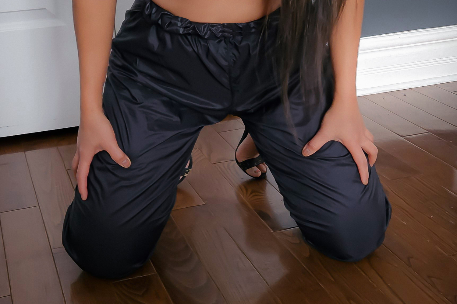 My favorite pieces include nylon pants, shiny windbreaker jackets, and windpants, I’m really into wetlook sportswear, too! On my website, you’ll find tons of photos and videos of me in my favorite outfits. I also offer custom content if you’re interested.